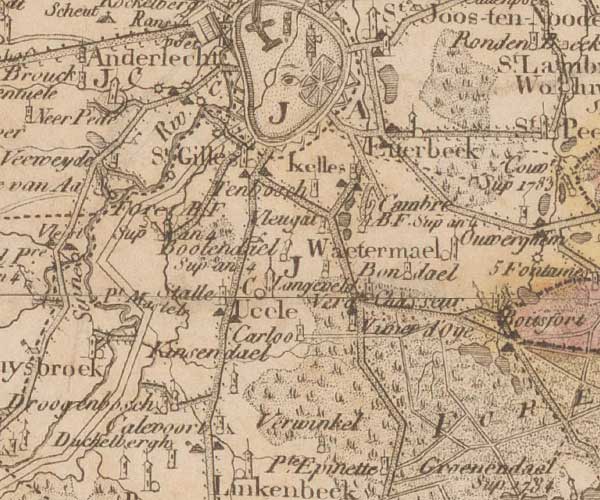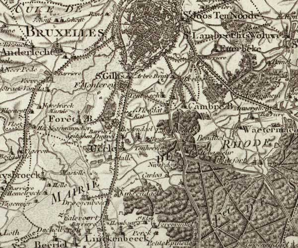relie Bruxelles, St-Gilles (St.Gillis), Uccle et Linkebeek (Linckenbeeck). Le hameau de Verrewinkel (Verevvinkel) est