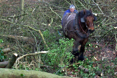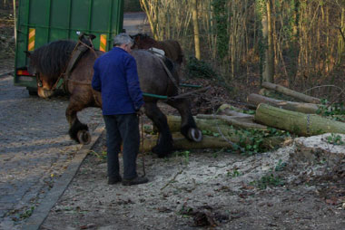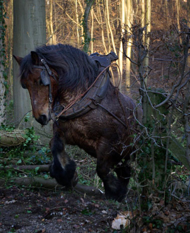 En 2007, des chevaux de traits sont intervenus au bois de Buysdelle. Ils ont pu franchir le talus sans trop le dégrader !