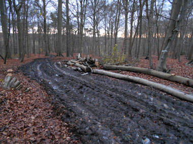 Chemin de débardage. Ou bien il passe en dehors du chemin des piétons et aucune anémone ou jacinthe qui n'y poussera
