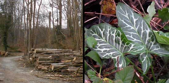Sous ce tas de bois, il y a un Gouet d'Italie (arum italicum), une plante assez rare par chez nous...