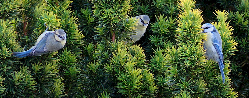 Mésanges bleues explorant un if