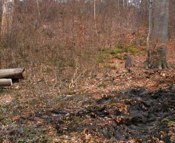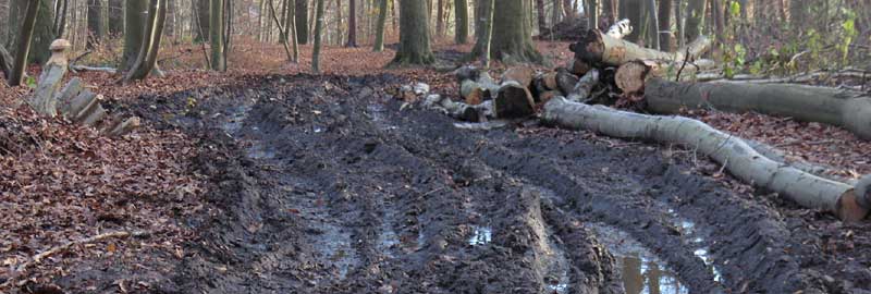 Chemin de débardage. Ou bien il passe en dehors du chemin des piétons et aucune anémone ou jacinthe qui n'y poussera