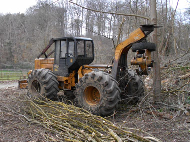 Souvent les arbres abattus abiment les arbres voisins lors de leur chute. Ensuite vient le débardage des branches et des grumes avec des tracteurs. Bien que canalisé dans des couloirs définis par BE, ce débardage occasionne aussi des dégradations au sol, au niveau de la flore et aux racines des arbres.