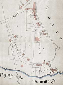 Un sentier le traversant en partie, permettait d'aller du bout occidental du goulet à l'ancienne école et église paroissiale Ste-Thérèse (le grand bâtiment au centre du plan cadastral de 1930). Devenue plus tard une simple église, le site a dû en étonner plus d'un avec cette cour de récréation à l'ombre de grands bouleaux, et avec au fond de la cour, les latrines... Détruit dans les années 80, le lotissement du "Clos des Bouleaux" occupe aujourd'hui l'emplacement.
