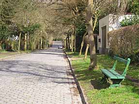 Et un banc. Quatre bancs existaient entre l'avenue Reinaert de Vos et ici dont trois avenue des Hospices. Deux ont disparu (celui au début du chemin du Moulin Rose - on en voit encore les dalles - et celui en face de la ferme St-Éloi). C'était pourtant bien pratique pour les personnes âgées ayant envie de se reposer un peu, ou pour déposer quelques instants ses paquets de retour des magasins établis de plus en plus loin ! Il est vrai que le piéton est une espèce en voie d'extinction... Au début, cinq villas se partagent l'avenue. D'autres se rajouteront au fur et à mesure. Seule celle à l'extérieur du tournant (en bas à gauche de l'avenue) sera démolie et reconstruite de 2003 à 2006 sur un nouveau plan. |
